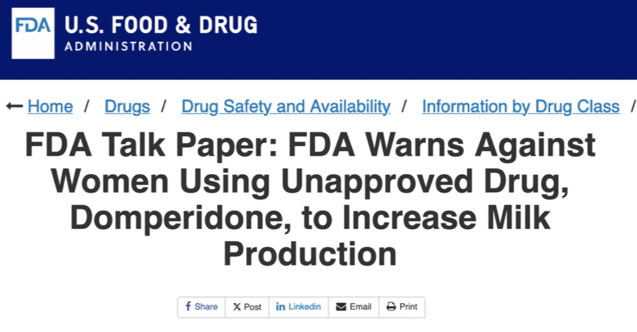 The FDA in the USA has banned the drug altogether, stating, “Although domperidone is approved in several countries outside the U.S. to treat certain gastric disorders, it is not approved in any country, including the U.S., for enhancing breast milk production in lactating women and is also not approved in the U.S. for any indication.”