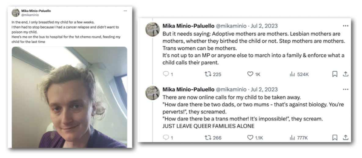 “For me, it was voicing my visceral disgust watching a man force his fetish to the point where they have a National Health Trust supporting his obvious abuse of a baby, knowing what I know about these men and that particular fetish.” Iris told me. “It’s unbelievable that they, the NHS, can abandon their ‘Do No Harm’ policy to validate these fetishists.”