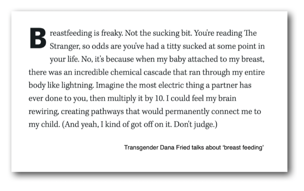 Trans-identified man Dana Fried writes about the sexual thrill of breastfeeding his baby.