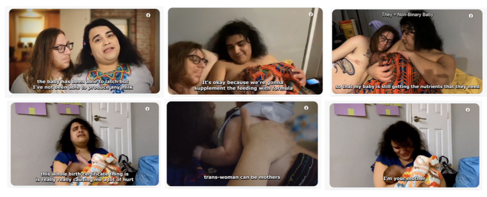 In a clip shared on Twitter, a man talks about how he can’t produce any milk for the baby his partner has birthed, but intends to continue suckling it. The baby’s actual mother (who thinks she’s a man and has had her own breasts removed) looks up at him adoringly.