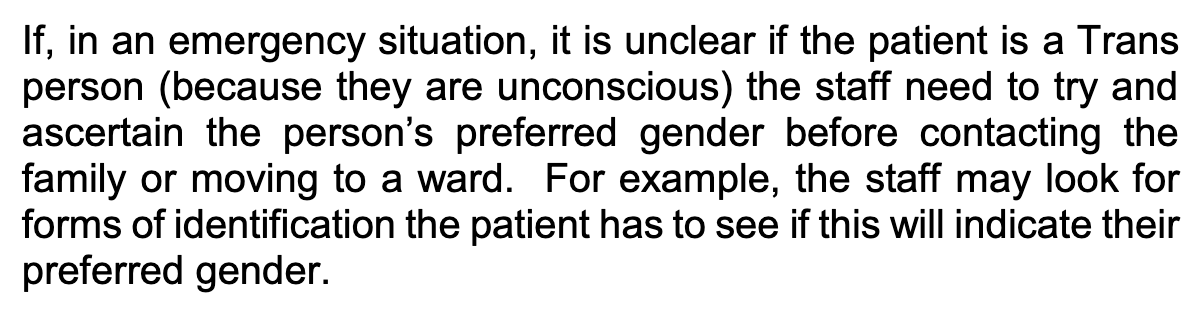 The policy is, predictably, an absolute clusterfuck of of ‘My Language’ preference sheets, hand-made pronoun stickers, ‘front holes’ and ‘genital openings’.