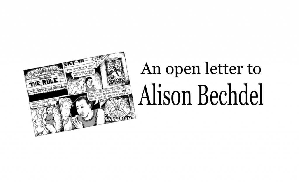 I like to think you knew what a woman was when you drew your iconic cartoon that sets the criteria for what we now call the Bechdel Test.