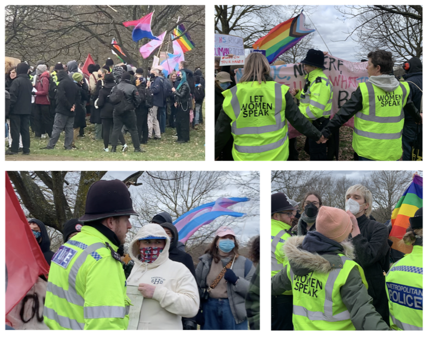 The police seemed less snarky this time. Perhaps they are starting to notice that the women really do just want to talk about their rights and the TRAs are actually completely barking mad, thrill-seeking troublemakers with very little imagination? Perhaps.