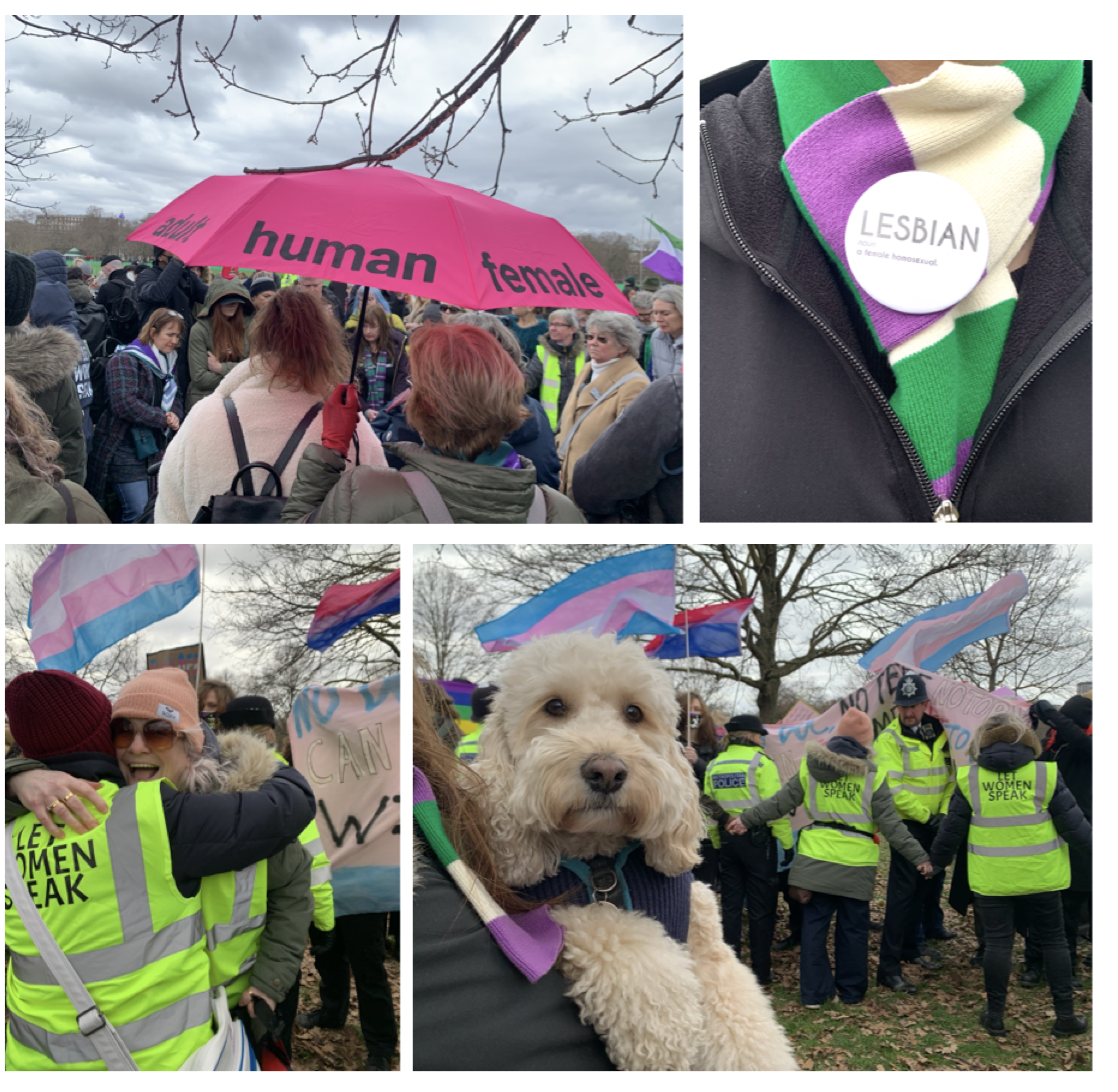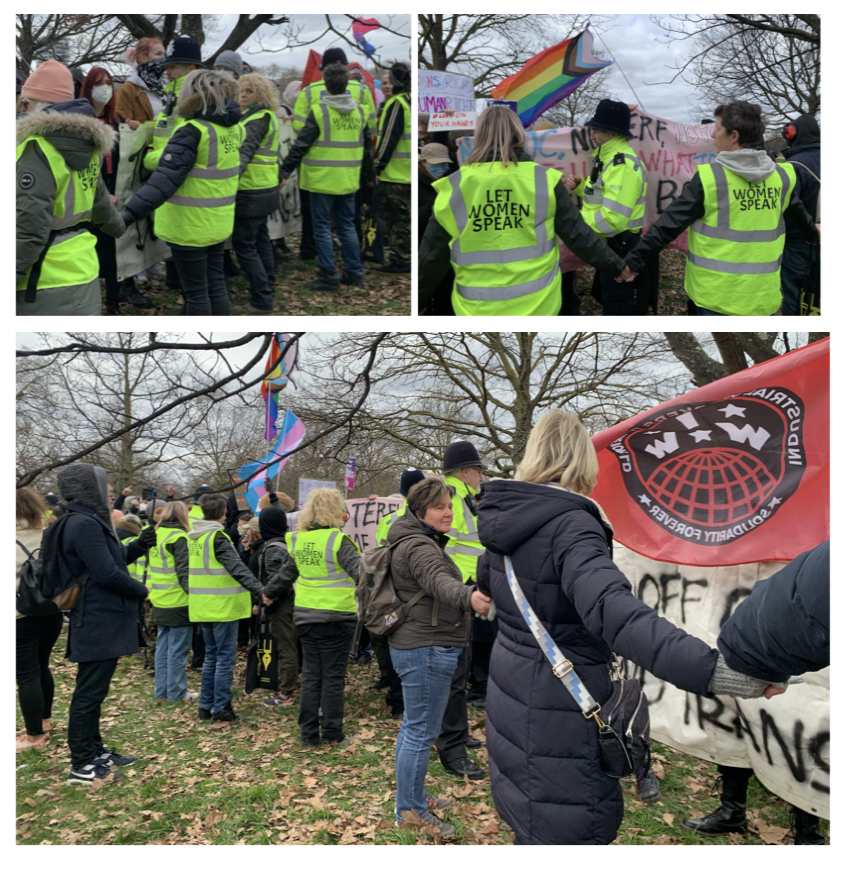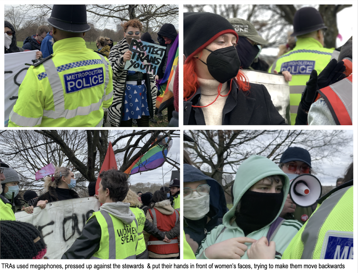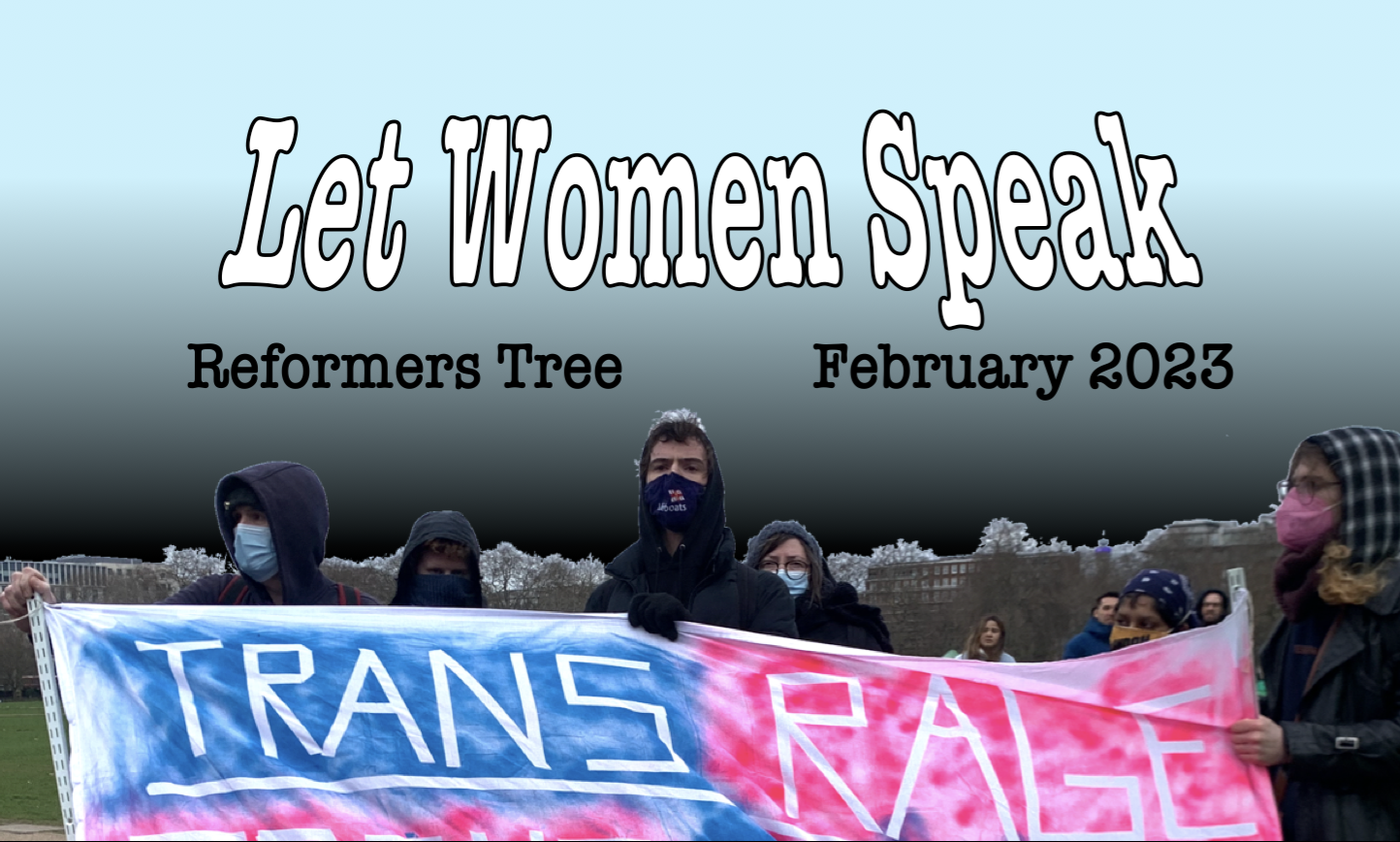 Well, here we are again, another chilly Sunday and another ‘Let Women Speak’ event menaced by TRAs. This time they brought along foghorns, megaphones and an amplifier, and I’d like to address that first of all. There’s a bylaw in the Royal Parks which states that amplification is not allowed. It makes sense really. On a busy day at Speaker’s Corner it would be impossible to hear a thing if all the speakers were amplified. Everyone else would just be immersed in a huge nonsensical cacophony of sound. Welcome to my Sunday afternoon, which was just that.