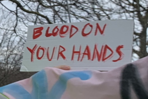 Shortly afterwards, a woman started shouting about abortion rights. I was genuinely confused for a moment. Did she honestly believe that as a group we were against abortion rights? Someone shouted ‘gay rights are human rights’. Don’t they realise that about half the people they are kettling are LGB? One person, their head entirely covered, was holding a sign reading ‘Gender is stewpid anyway’. Yes. So it is. So what the fuck is all this about?
