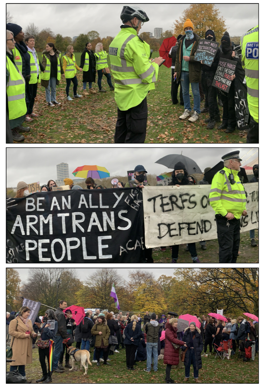 How is Hyde Park their turf? I’ve been hanging round here since I was a teenager. Some of us were at Pride marches and meetings in Hyde Park long before this lot were even a twinkle in the non-binary polyamorous milkperson’s eye. Some women present were involved in the protests of the 70s.