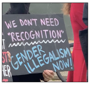 The new laws, she asserts, are in contradiction of international law protecting women’s rights. ‘The vast and destructive consequences of this new belief system’ are an “irrational encroachment of freedom of expression” and affect everyone “especially women, lesbians and artists… and academics.”