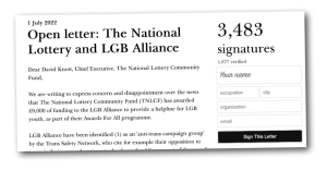 She has also been speaking with the Gay Men’s Network, and described the LGB Alliance as ‘fantastic people’.