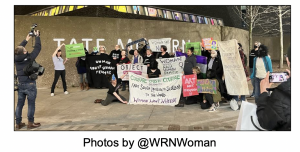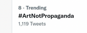 The protest definitely caused a stir. That night the hashtag #ArtNotPropaganda was trending on Twitter and we were delighted to see that the protest had made the Telegraph, both online and in the newspaper. The article is archived here.