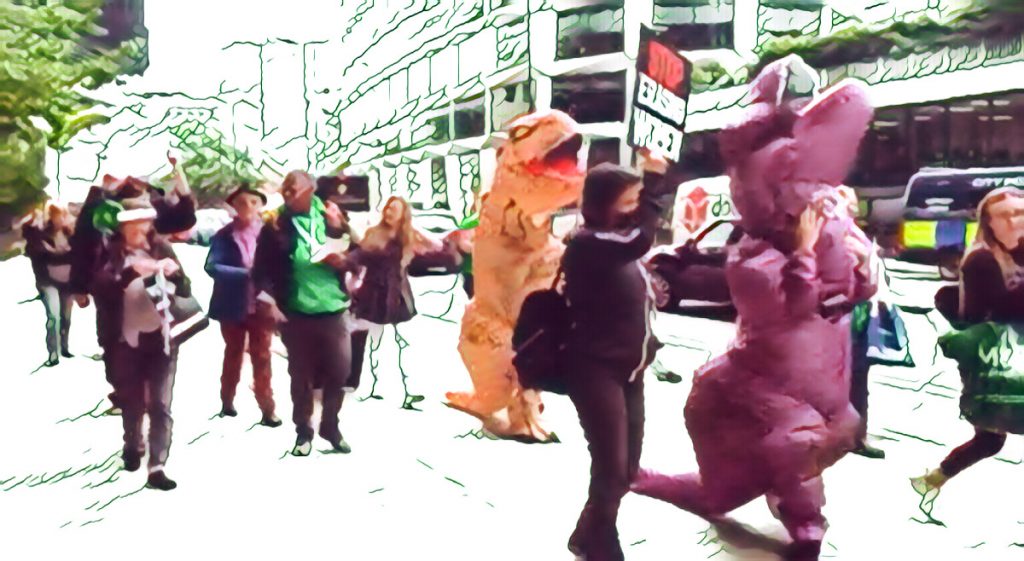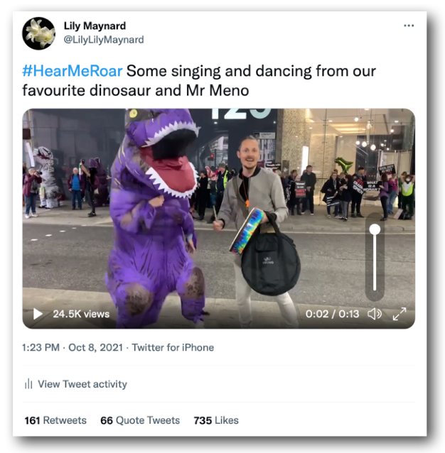 So that’s the tale of Friday’s protest, really. Megaphone & whistles, banners and masks, vulvas and dinosaurs, ribbons and placards.