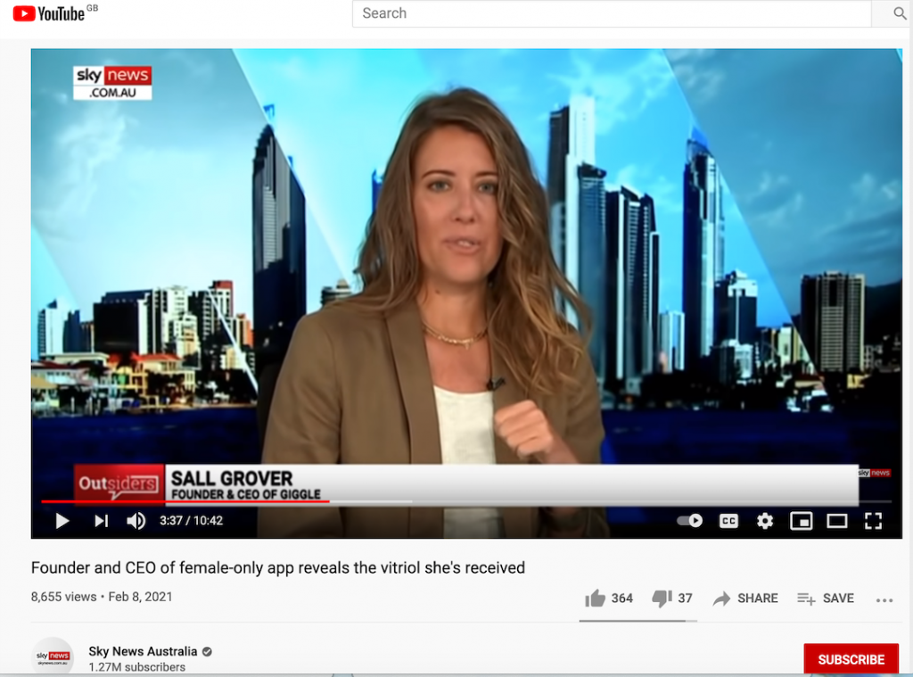 During the development of giggle, Grover says she fought for transwomen to be able to use the app. “We created onboarding so they wouldn’t be misgendered; we really did everything we could to be as welcoming as possible”.