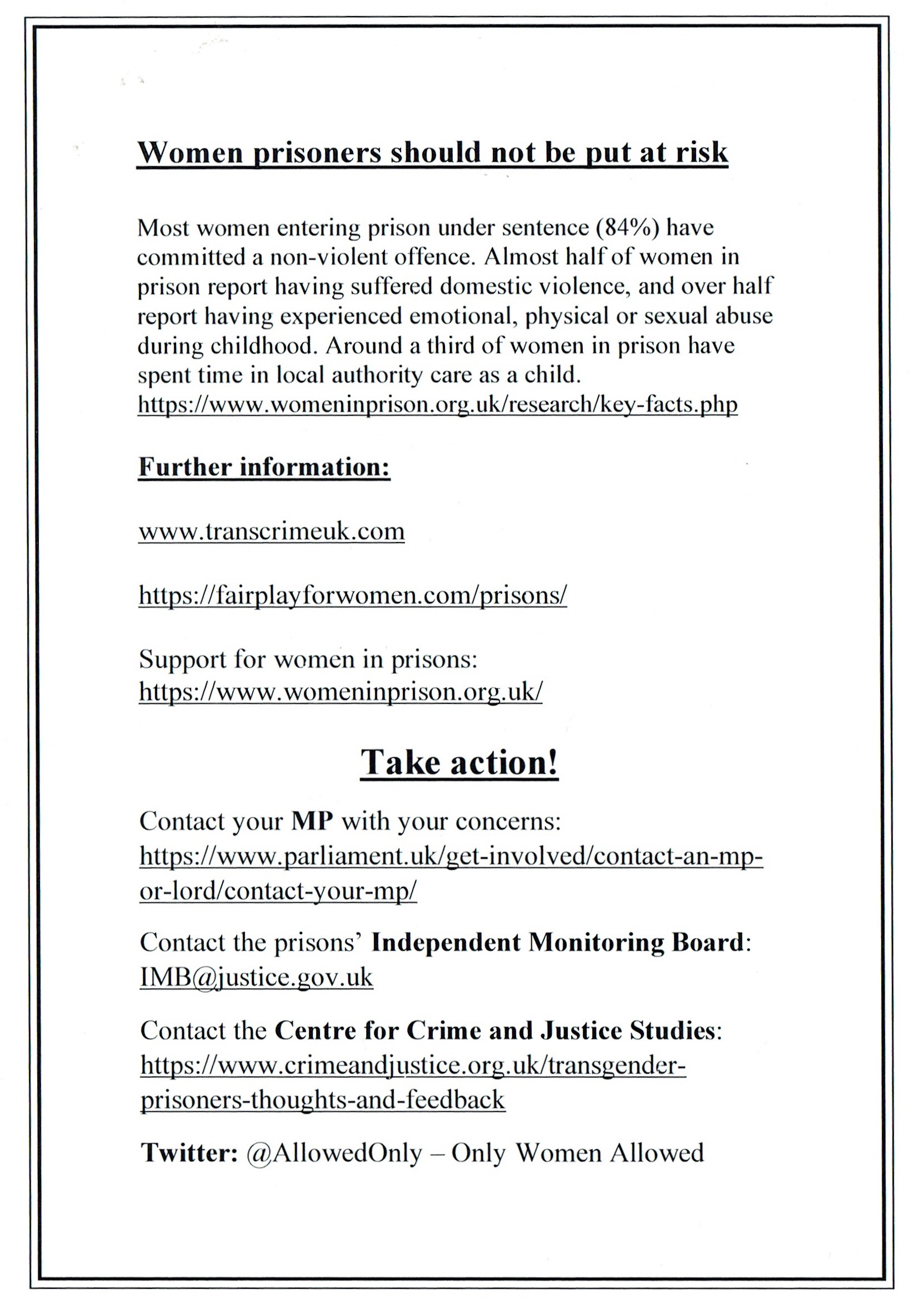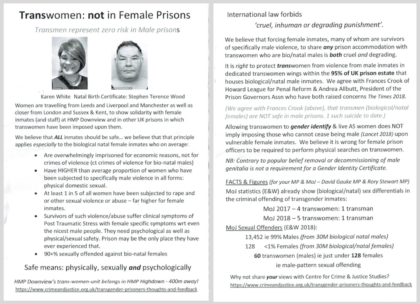While in prison she told a tribunal that her guards had tried to rape her and she didn’t feel safe wearing women’s clothing, saying that if they moved her somewhere she felt safe she was willing to dress as they prescribed. The tribunal made her sign a document stating she would no longer wear men’s clothing.