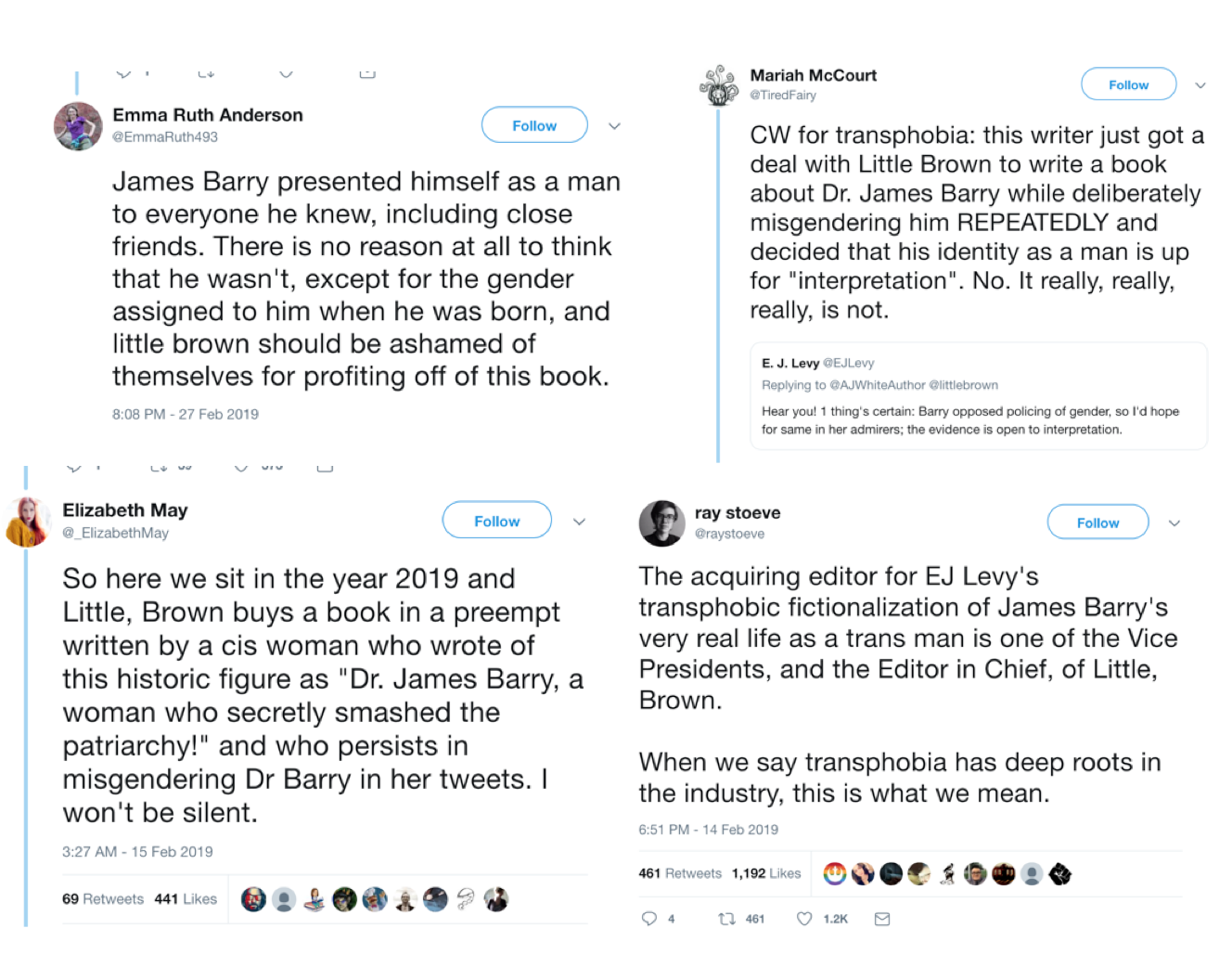 Yet when writer E. J. Levy announced in February 2019 that the publishing house Little, Brown & Co would be publishing her novel about Barry, Twitter recoiled in shock and horror at her use of female pronouns.