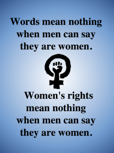 Magdalen Berns introduced me to this wonderful, spectacularly succinct phrase. The fact that this phrase is fast becoming controversial sums up the absurdity of the current state of gender politics.