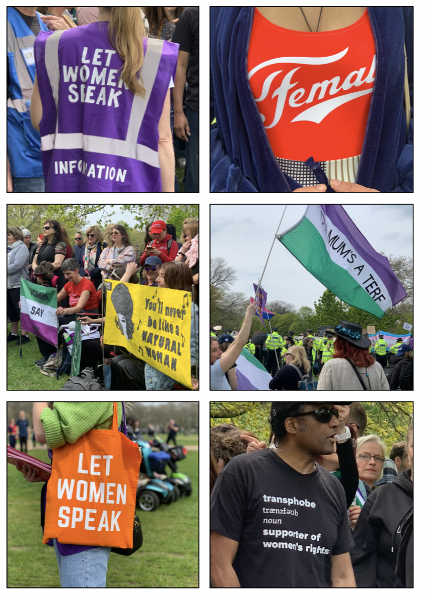 “I saw so many women and girls whose rights have been trampled on by the hard trans rights activists who don’t care one bit about any of them. I am horrified by men who say they identify as women, want all the rights of women, want to take women’s places in sports and enter women’s toilets and changing rooms. They aren’t women and they have no idea how it feels to be a woman because if they did they would understand how violated women feel by this.
