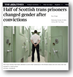 He refered to a recent story in the Times revealing that half the men in Scottish prisons claiming to be women only decided to do so after their conviction, and that this is clearly because they wish to avoid being held in the male estate.