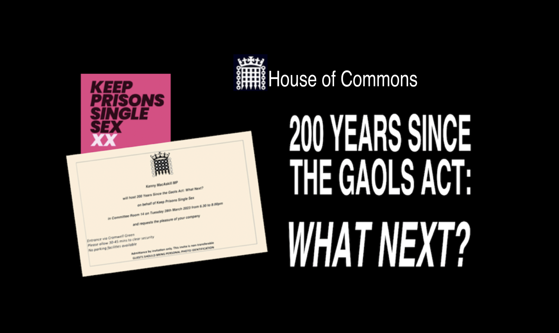 On 28th March 2023, MP Kenny MacAskill hosted an event on behalf of Kate Coleman and Keep Prisons Single Sex. 150 tickets were issued for “200 Years Since the Gaols Act: what next?”
