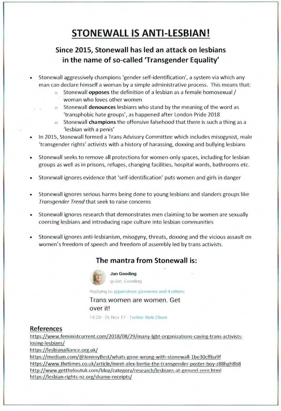 Brilliant report Lily. Power to all the lesbians who stand up to Stonewall’s bullying.