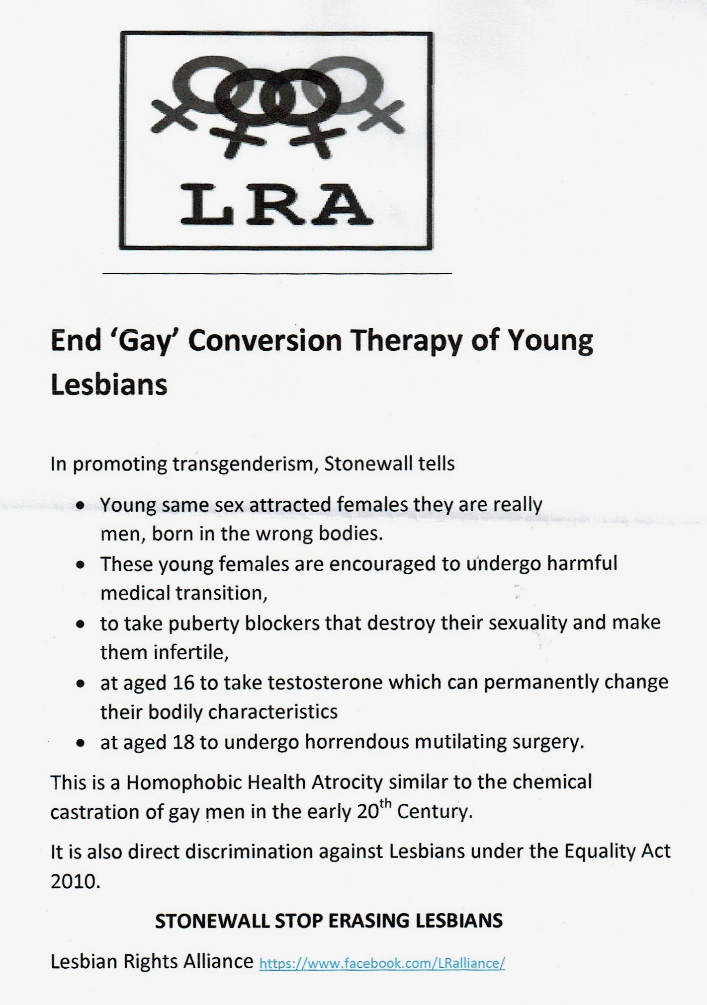 The Lesbian Rights Alliance were there, and they also had a leaflet which they were handing out.