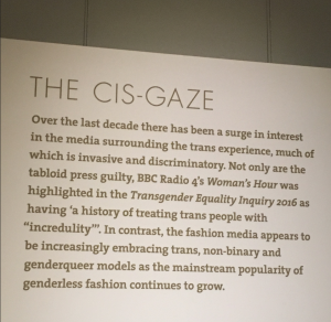 The display claims to ‘challenge the idea that gender is fixed, binary and biologically determined by exploring how the objects reflect the participants’ self-determined gender journeys.’