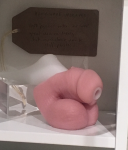 I suspect she has stumbled upon ‘soft packer with she-wee’, an exhibit bearing the explanation, “Great idea in theory but impractical due to hard plastic.”