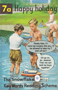 This one should really have accompanied my article ‘But Nobody’s encouraging Kids to be Trans!” but I didn’t come up with it until shortly afterwards. Just leave the kids alone FFS! Little kids don’t need ‘educating’ about gender.