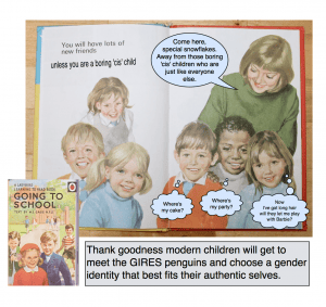 If that last comment seems a little extreme, perhaps a step too far: ‘people-would-listen-more-if-you-toned-it-down-a-bit-Lily’ I would ask you to consider the GIRES Penguins. The GIRES Penguins, guaranteed to confuse and baffle young minds and undermine their trust in their parents, are featured in a series of stories about transgender baby penguins. One is a TIM, one is a TIF and one is non-binary. The thing they have in common is how very, very special they are.
