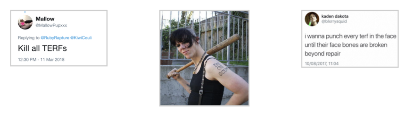 Dr Long spoke of the violence and the threats of violence that transactivists use against women, showing us a slide of the infamous ‘die cis scum’ meme and a variety of Tweets calling for violence against women. She referenced the violence against Maria MacLachlan, a 60-year-old humanist funeral celebrant who was punched in the head by a transactivist at Speakers’ Corner while waiting to attend a feminist discussion, and how A Woman’s Place had recently tweeted that a woman on a picket line had been verbally abused and harassed for having attended one of their meetings.