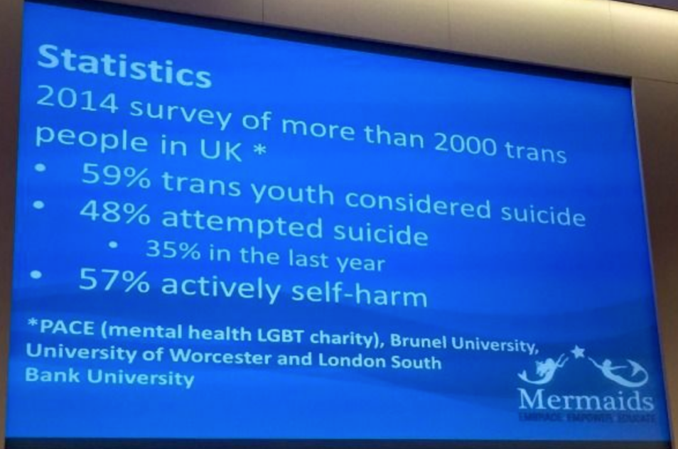 Ruzylo pointed out that inaccurate information concerning suicide rates amongst trans-identified children is being frequently repeated (see right) by organisations who support early treatment with blockers and hormones, convince parents that they need to support their child’s transition and want the NHS to relax protocols. She spoke at length of the findings of a scientist who critically examined the Pace survey. Here are the findings which come to the conclusion- among other things- that there were just 27 trans-identified young people in the survey, not 2,000 as is so often stated.