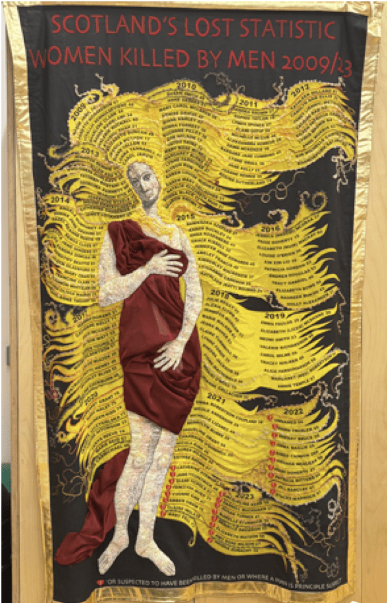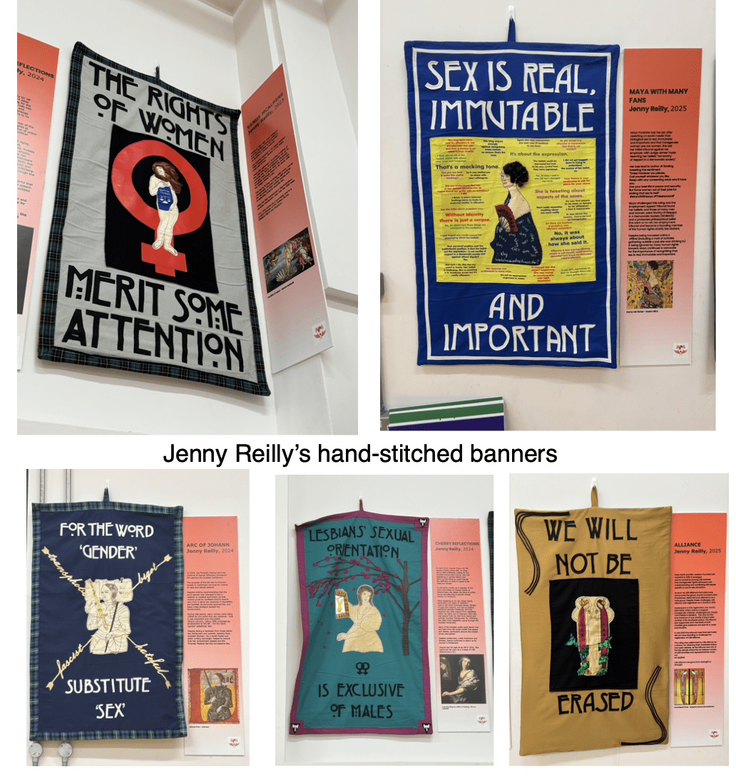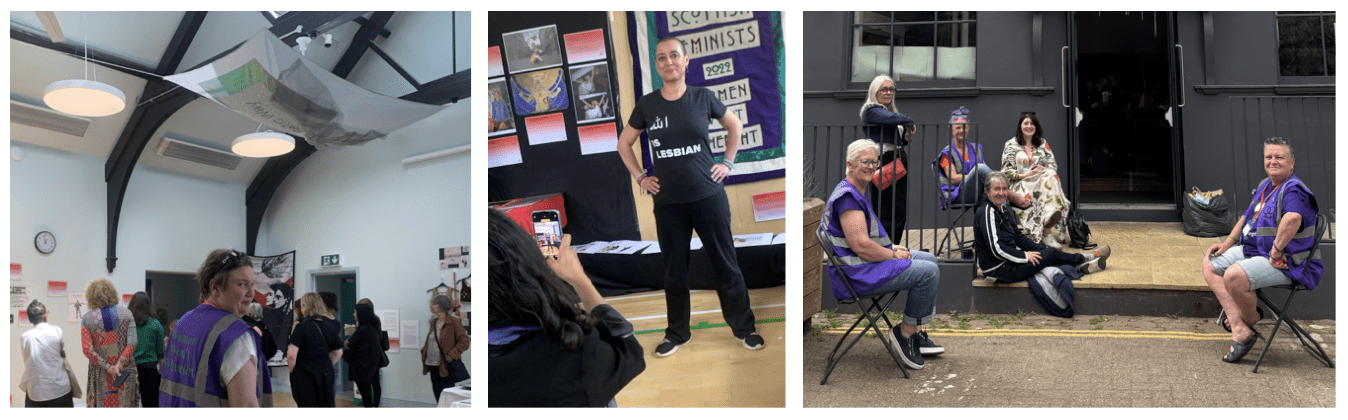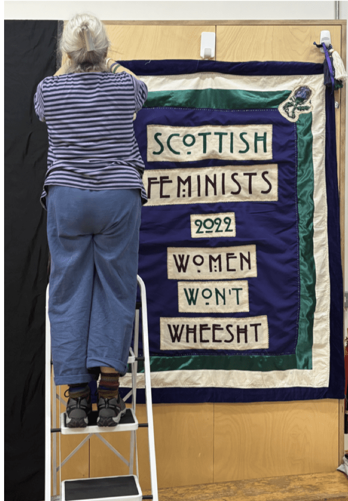 While we waited for the first panel to begin, many admired the beautiful banners which adorned the walls of the hall. Jenny Reilly creates banners for the Scottish Women’s Rights group, Women Won’t Wheesht.