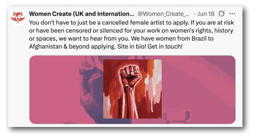 The crimes for which women artists have been cancelled? Expressing their grief and outrage at murder, torture, rape, medical malpractice and exploitation. This really is a ridiculous situation. It’s unforgivable.
