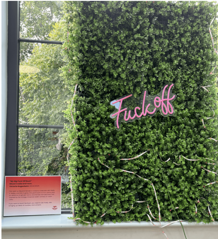 Victoria was exhibiting her piece ‘My Big Fuck Off Bush”.