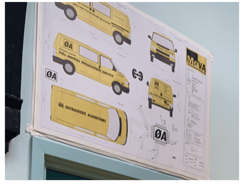 During the COVID lockdowns, Ara turned her van into a mobile art exhibit with ’24 Hour Merntal Breakdown Service’ written along the side. Sightings went viral on social media. You can learn more about Outrageous Algorithms (A fourth emergency service for todays problems) here.
