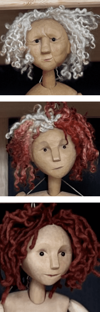 But in May, with a deadline looming, I suddenly sprang into action, refining their heads and making the wigs. Joan has around 80 holes in her head, each one plugged with curly raw sheep’s wool. Each plug must be carefully separated from the bundle of fibres and tied at the base before being pushed into the hole and glued. It’s a labour of love.