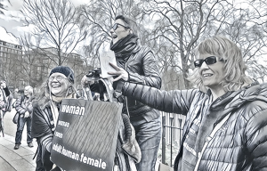“Men have been silencing women for thousands of years and telling us that our voices don’t count and our words aren’t as valuable as theirs and we have to sit down and listen to them and let them define our reality … we will not be told by men what a woman is and we will not be silenced by those lunatics over there…”