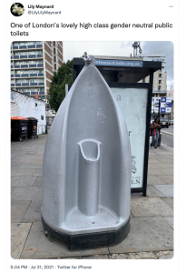 Well, it’s not often men have to stand in a queue to use a public toilet, while women don’t have to wait, so that was probably a new experience for them. But they weren’t psychologically uncomfortable. They felt able to loudly and cheerfully make a joke to a complete stranger about the absurdity of non binary identities; that and their willingness to wait showed that they respected the importance of single sex toilets.