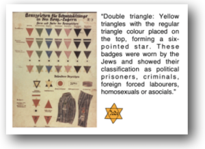 The yellow triangle, of course, was used by the Nazis as the basis for prisoner identification badges during the Holocaust and as such it already has a deep significance for Jewish people.