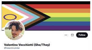 Last year Quasar’s flag was all the rage but the new, intersex inclusive flag (left), as seen in Waterstones teen book display, seems to have caught on this year. Designed (if that really is the word we have to use) by intersex activist Valentino Vecchietti (she/they) the flag was first popularised in 2021.