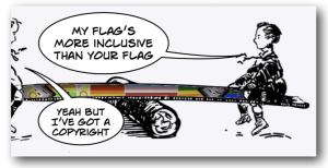 What is going on here? I imagine Quasar may be feeling slightly miffed at having his flag usurped so quickly, especially after all that effort copyrighting it. Is there a secret ‘Pride flag war’ going on? And how many versions are there?