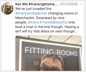 “I had this in an M&S a couple months back.” commented one Twitter user. “Obvious male looking at bras and “joshing” loudly with the staff before going to try them in the female fitting rooms. I wanted to try some things but didn’t feel comfortable with him there, so hung around till he’d gone. Didn’t say anything…”